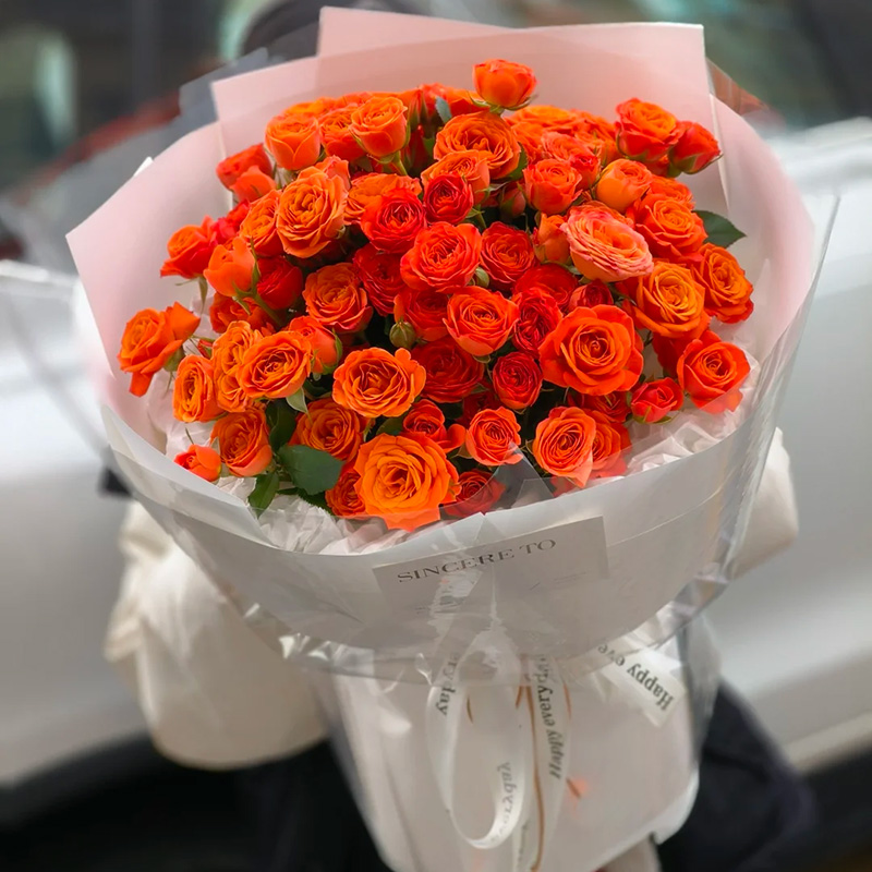 花 材:精选19枝多头橙色芭比(珍贵稀少花材,请提前预定)