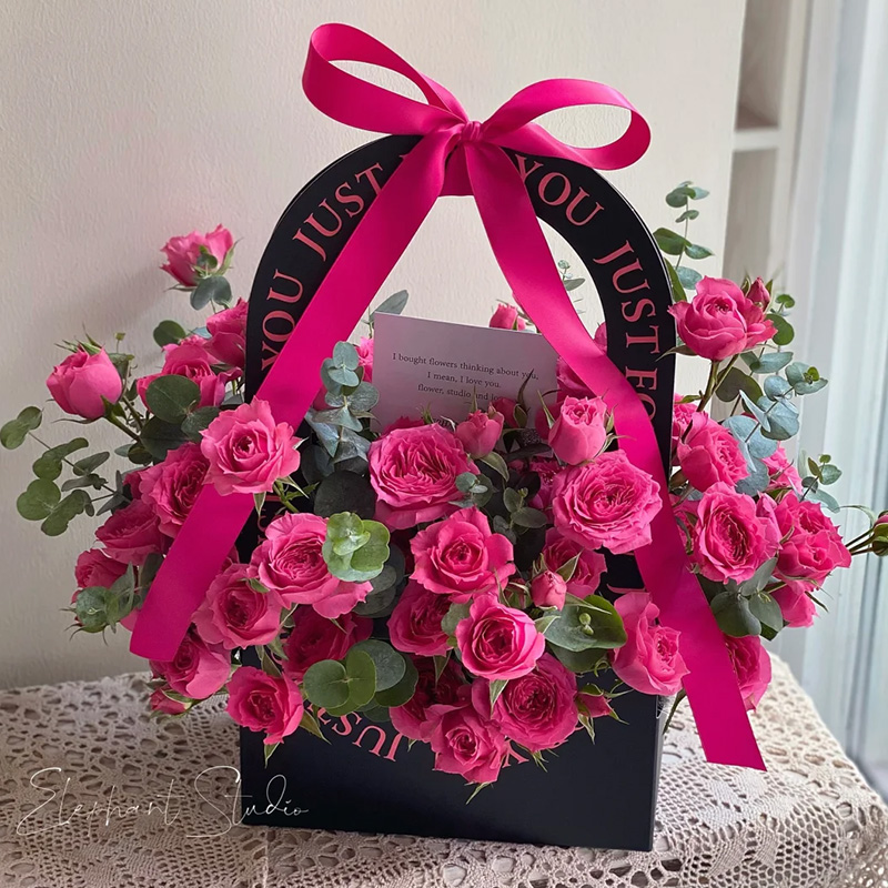 包装: 精美纸质手提花篮(花篮和配饰等具体以当地实物为准),珍贵稀少花材请提前预订或咨询客服。