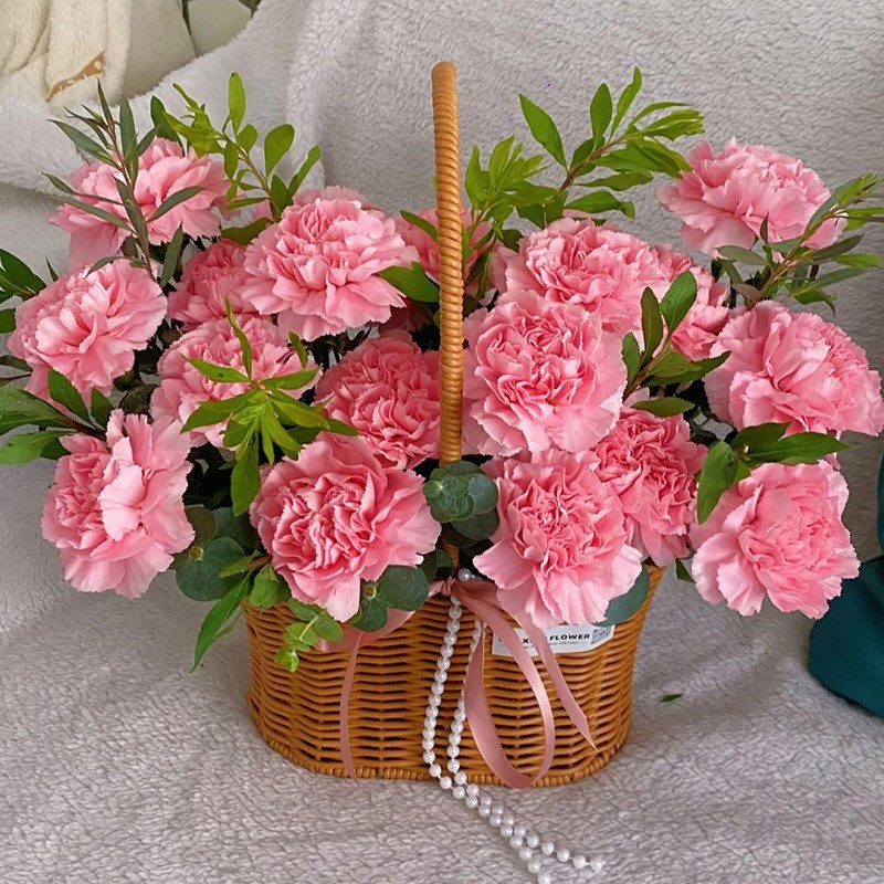 包 装:精美手提花篮,提手上珠串装饰。(篮子和配饰等具体以当地实物为准)
